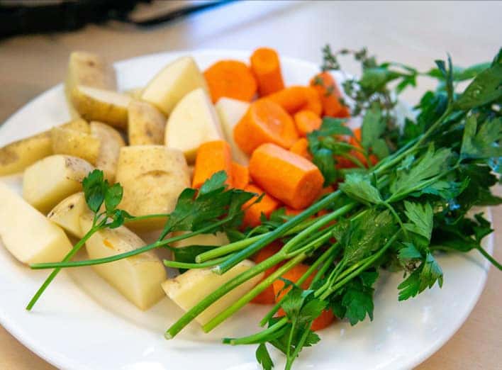 Add the rest of the beef stew ingredients and turn the pressure cooker on.